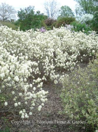 Forsythia x intermediaFothergilla gardenii, dwarf fothergilla, Zones 5-8. I love the