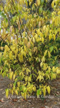 Jasminum nudiflorumLindera obtusiloba, Japanese spicebush, Zones 6-9. Small greenish-yellow flowers occur in late winter on the bare-stemmed branches followed by red-changing to black-fruits. Grows well in shady conditions and is excellent for brilliant yellow fall leaf color as well.