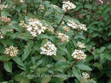 Viburnum tinus, laurustinus, Zones 8-10. An evergreen species with pink buds that open to white flowers in winter. This winter flowering shrub makes an excellent hedge or screen in the warmer climate zones.